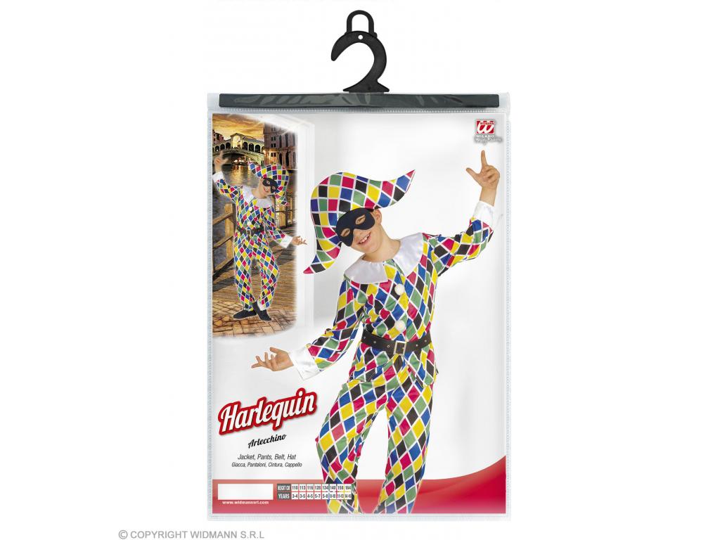 A Harleqiun jelmez egy nagyon vidám mókás gyermek jelmez. A szett tartalmazza a a felső kabátot, a nadrágot az övet és a kalapot. Legyen Halloween vagy Farsang, a Widmann kiváló minőségű jelmezei és kiegészítői számtalan lehetőséget kínálnak.