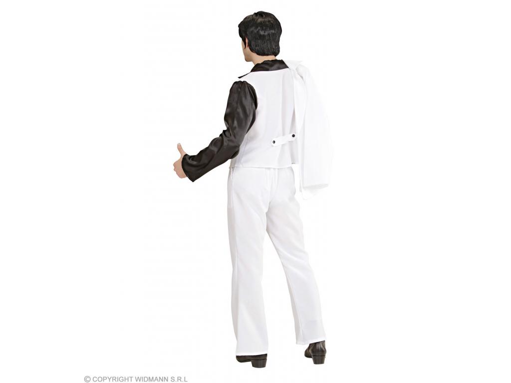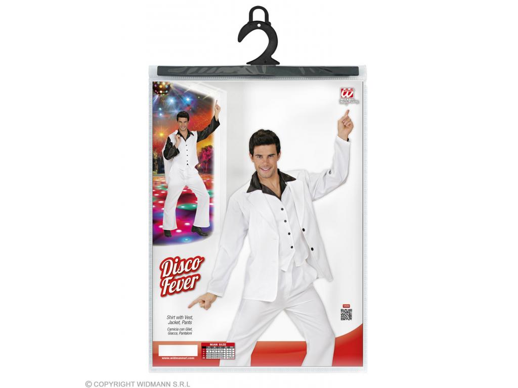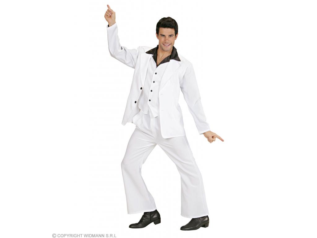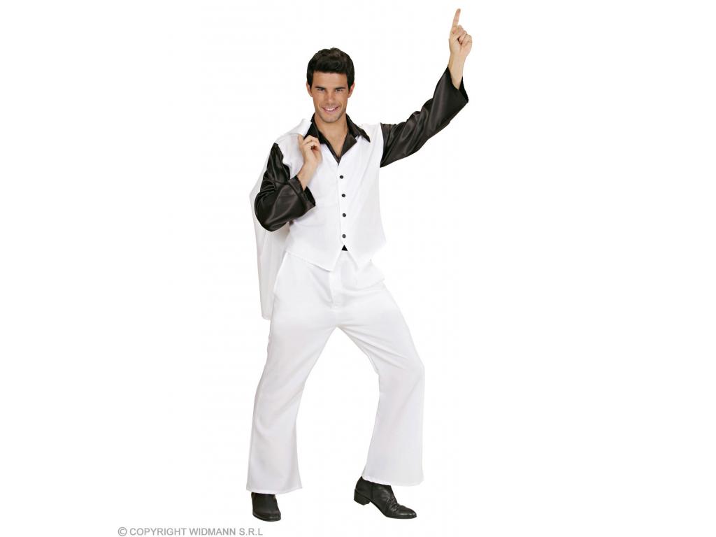 Felnőtt jelmez szett, részei: fehér nadrág, fekete ing, fehér mellény és zakó. Cipőt, parókát nem tartalmaz. Méret: XL. Elegáns és sármos diszkótáncosként hamar a figyelem középpontjába kerülhet a karneválon, jelmezbálon vagy házibulikon.