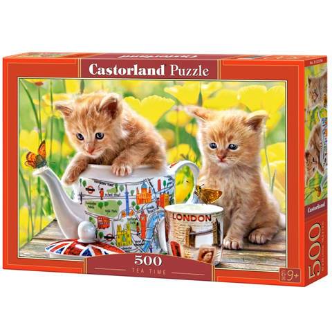 Ez az 500 darabos puzzle remek választás, ha egy vidám képet szeretnél magadnak és egyben szívesen töltesz időt a kirakós játékokkal. A teáskészlet és a kismacskák aranyos és élénk színű képe a kisgyerekek szobájában épp olyan jó választás, mint a nagyobbak számára. A Castorland puzzle a kiváló minőségű nyomtatási technológiának köszönhetően éles és élénk színű képeket eredményez, a puzzle elemek pontosan illeszkednek, így az elkészült kép bármely szoba legszebb dísze lehet.
