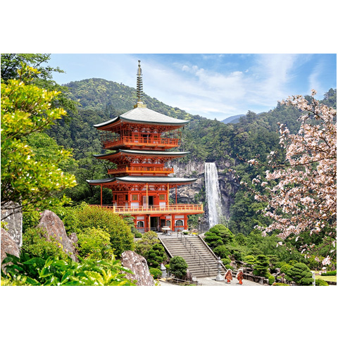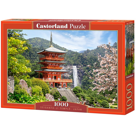 A Seiganto-ji templom a legendák szerint már a negyedik század óta megtalálható Kii hegység területén a Nachi vízesés közelében. A puzzle tökéletesen visszaadja a hely varázslatos hangulatát, és azt, hogy az épület milyen nagyszerű harmóniában van az őt körülölelő természettel. A Castorland puzzle a kiváló minőségű nyomtatási technológiának köszönhetően éles és élénk színű képeket eredményez, a puzzle elemek pontosan illeszkednek, így az elkészült kép bármely szoba legszebb dísze lehet.