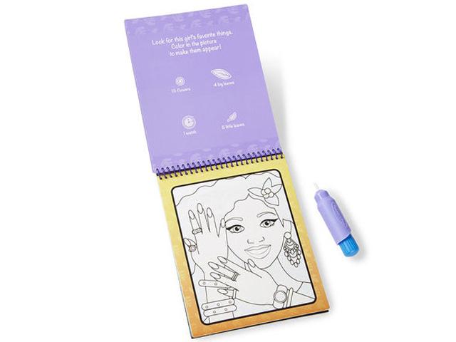A Smink és manikűr kifestővel megfigyelheted, hogy miként változnak meg az arcok, attól, hogy elnyerik a színüket. A vízzel feltöltött tollal csak el kell kezdened színezni a képen látható lányok körmeit, haját vagy száját, és máris előtűnik, hogy ki milyen sminket és körömlakkot választott. A Melissa & Doug rajzolás vízzel kreatív játéka egy varázslatos füzeten alapszik, aminek a lapjait a készletben található speciális tollal lehet kiszínezni. A tollat töltsd fel vízzel, és egyszerűen a sima vízzel színezd ki a lapokat, és nézd, ahogy a nedvesség hatására előtűnnek a színek. A megszáradás után a színek eltűnnek, és újra kezdhető az egész folyamat.
