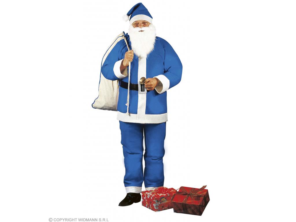 A hagyományos mikulás jelmezektől eltérő, kék színű (fehér szegéllyel), mikulásruha szett.