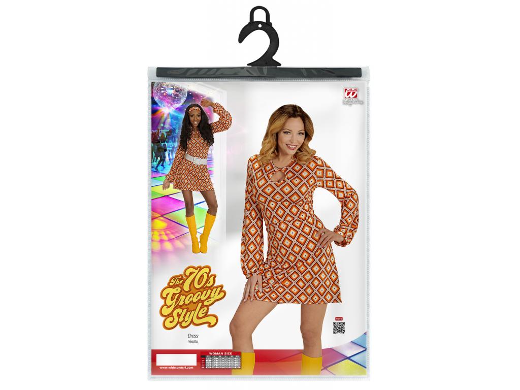 A 70 es évek retró ruha rombuszos mintával női jelmez leírása: