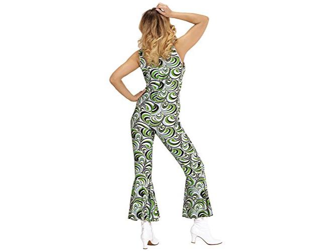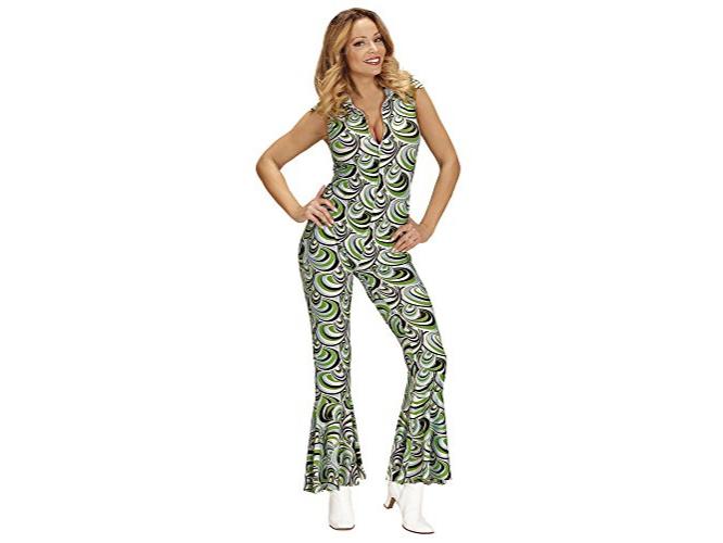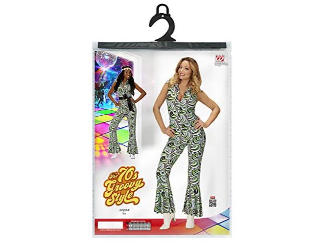 A 70 es évek retró kezeslábas hullám mintával női jelmez leírása: