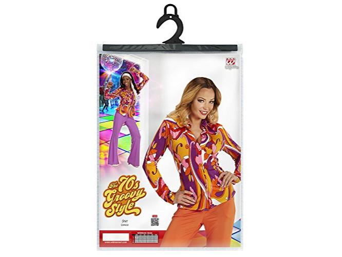 A 70 es évek blúz orchidea mintás női jelmez leírása: