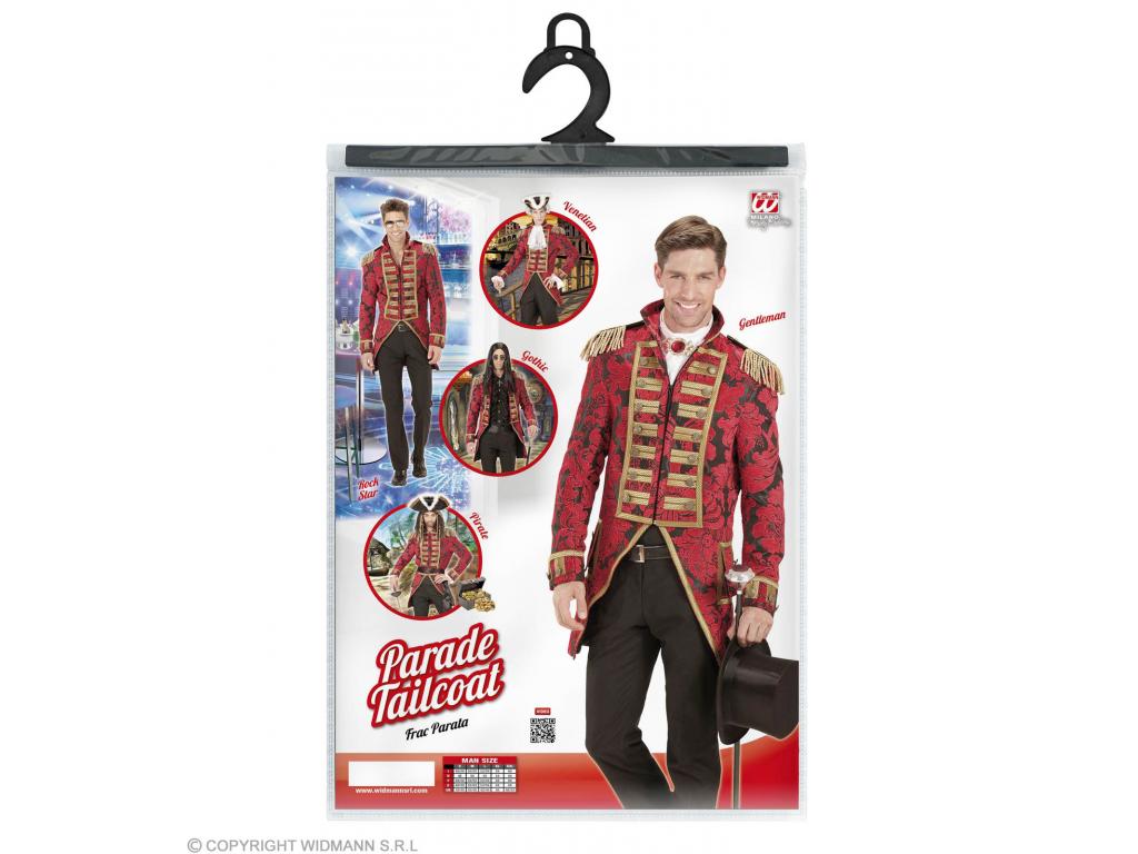 A Jacquard Parade piros színű frakk férfi jelmez leírása: