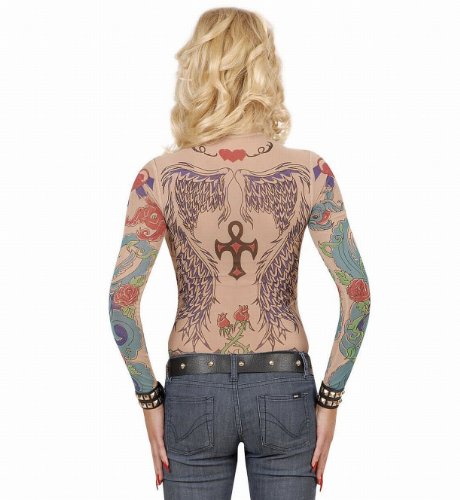 A Tetovált angyalszárnyas póló női jelmez M-es méretben leírása: