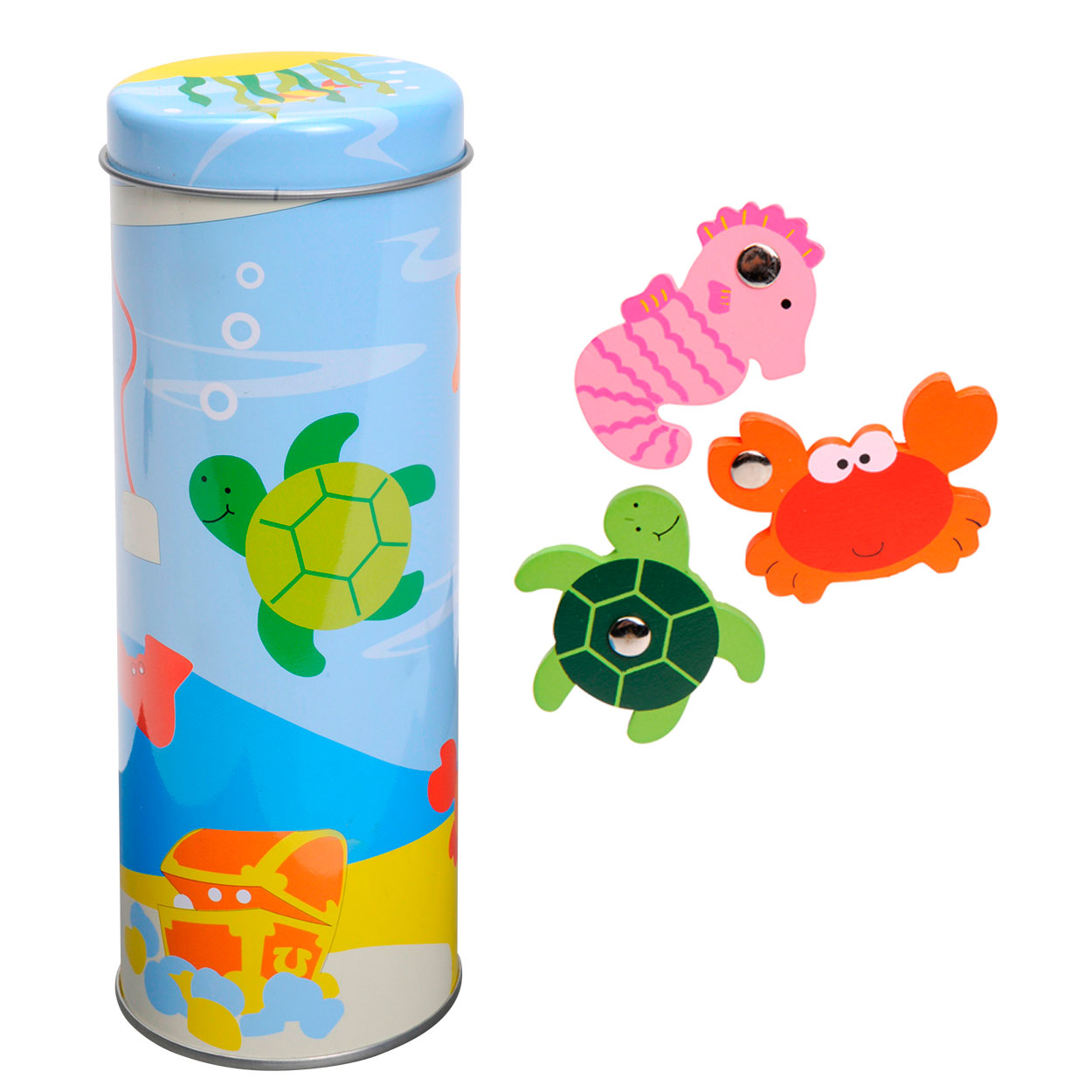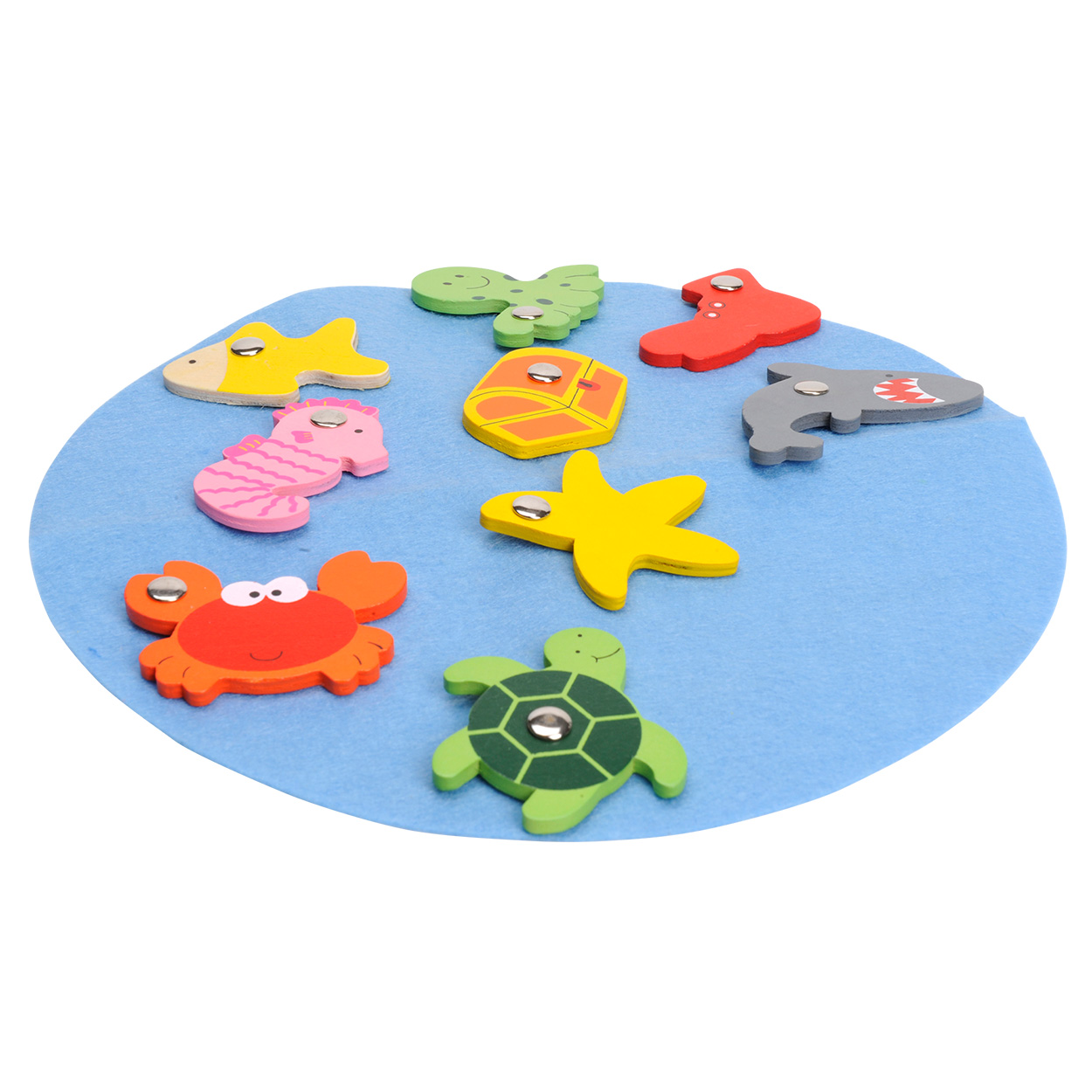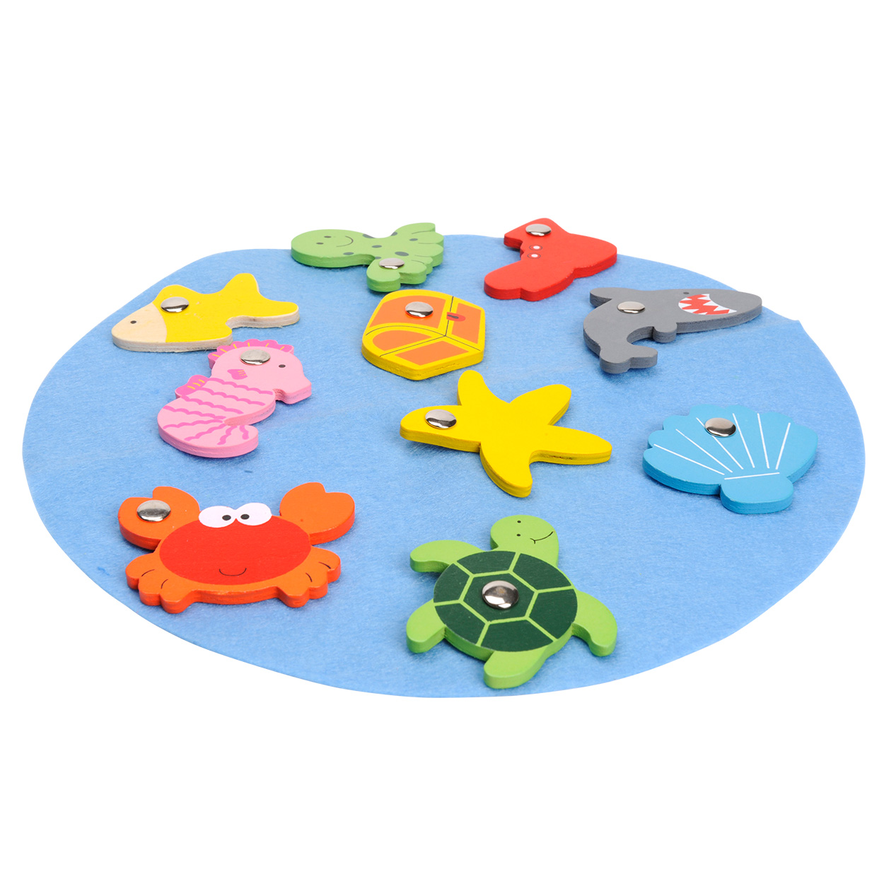 Horgászd ki a mágneses horgászbot segítségével a kedves,halacskákat és ha elkaptad mind, helyezd vissza őket a helyükre! Fából készült formabeillesztő játék, mely fejleszti a finom motorikus készséget, a szem-kéz koordinációt és kézügyességet.