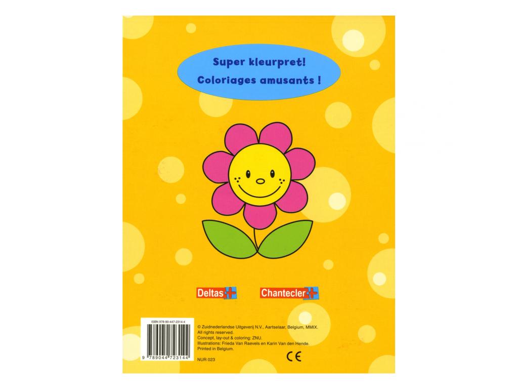 Kifestőfüzet 3-4 évesek számára, melyben vidám, egyszerűbb rajzokat színezhetnek.