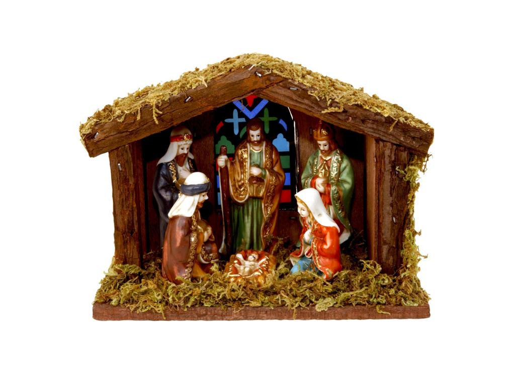 Krippe mit 6 Figuren und Licht