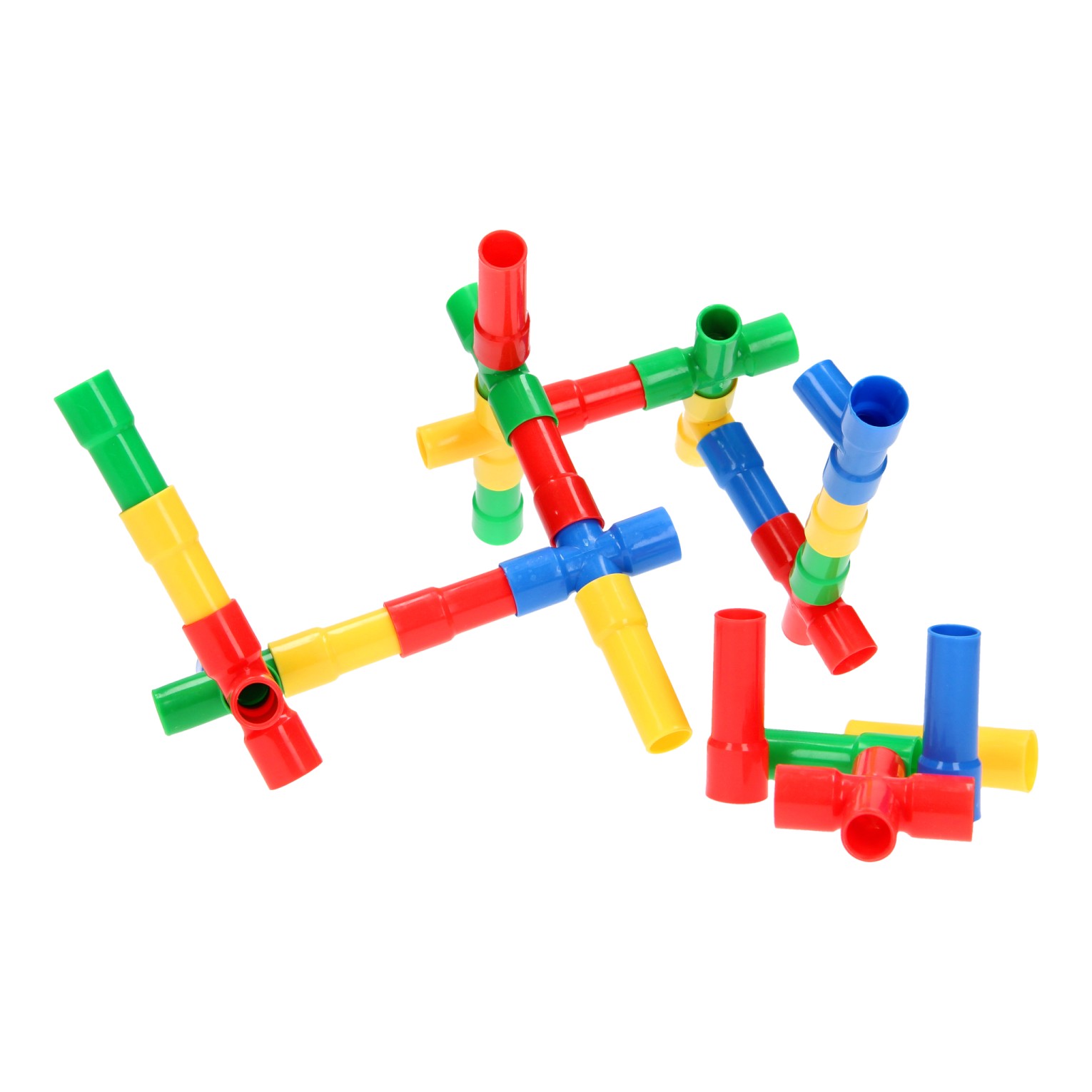 Színes, műanyag építőelemek, melyek egyszerűen egymásba illeszthetők, a kis, műanyag csövekkel az óvodás-iskolás gyerekek is élvezni fogják a játékot.
