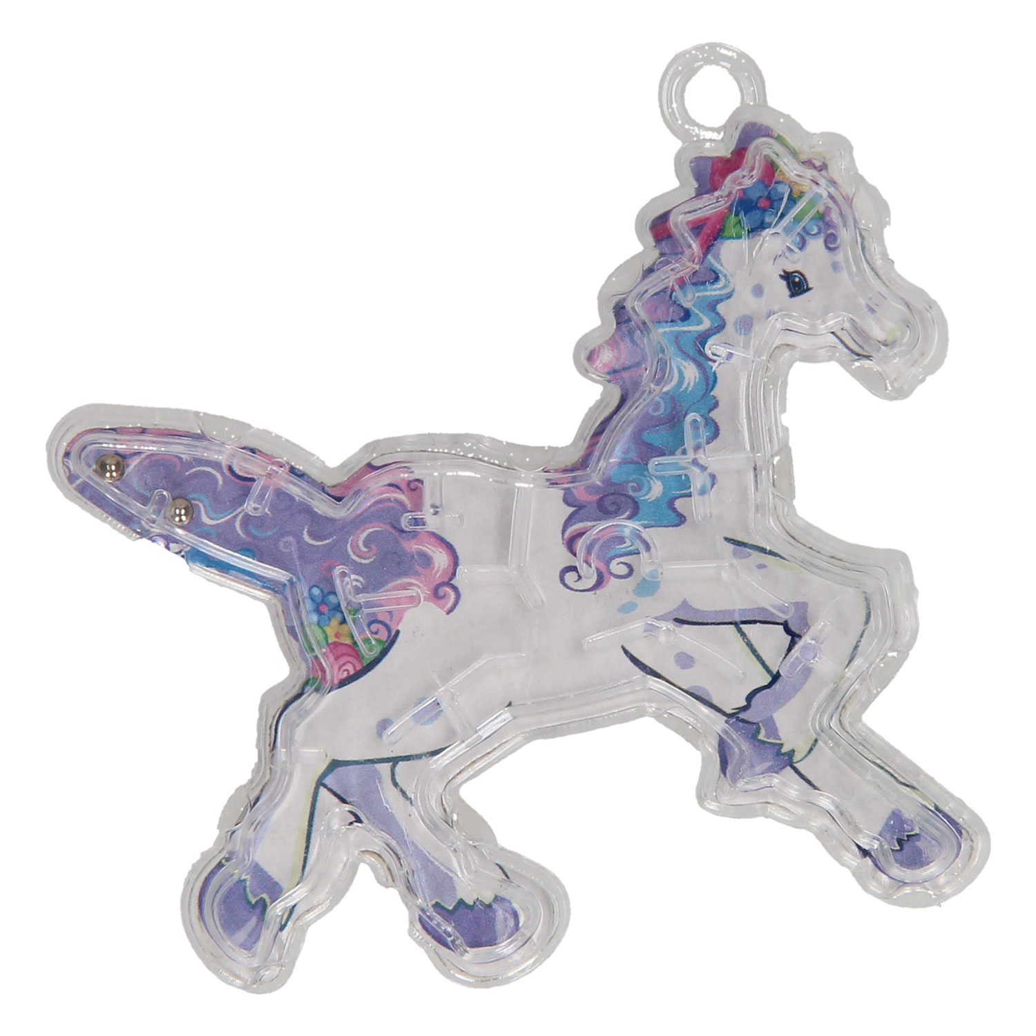 Műanyag, ló alakú labirintus játék, fém golyóval.