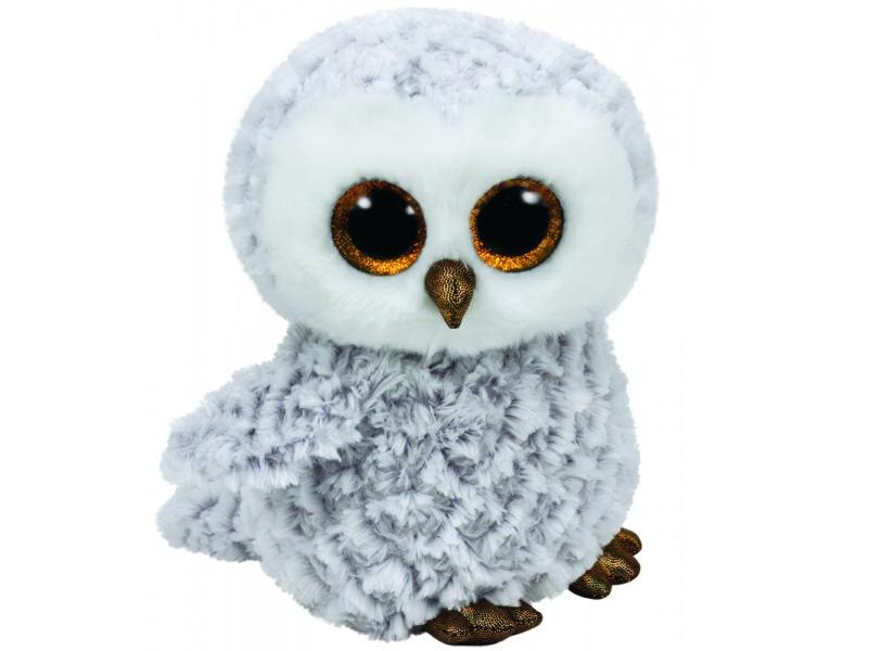 Hófehér bagoly plüssfigura, nagy szemekkel! Az Owlette bagoly plüssfigura a legpuhább plüssből készült madár, babzsákos töltéssel. A bagoly a fehér színű, szürke foltok tarkítják, szemei aranyszínű csillámmal vannak töltve. Az Owlette bagoly plüssfigura mérete: 24 cm.