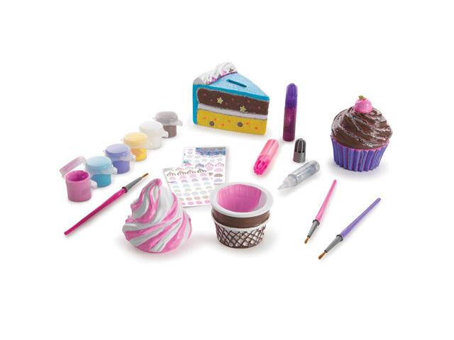 A süteményeknek mutatósnak is kell lennie, hogy a vásárlókat egyből elvarázsolja. A készletben három sütemény várja, hogy tetszés szerint dekoráld. Hat különböző színű festékkel díszítheted majd a csillámos ragasztókkal és matricákkal fokozhatod a hatást. A szett káros anyagoktól mentes.