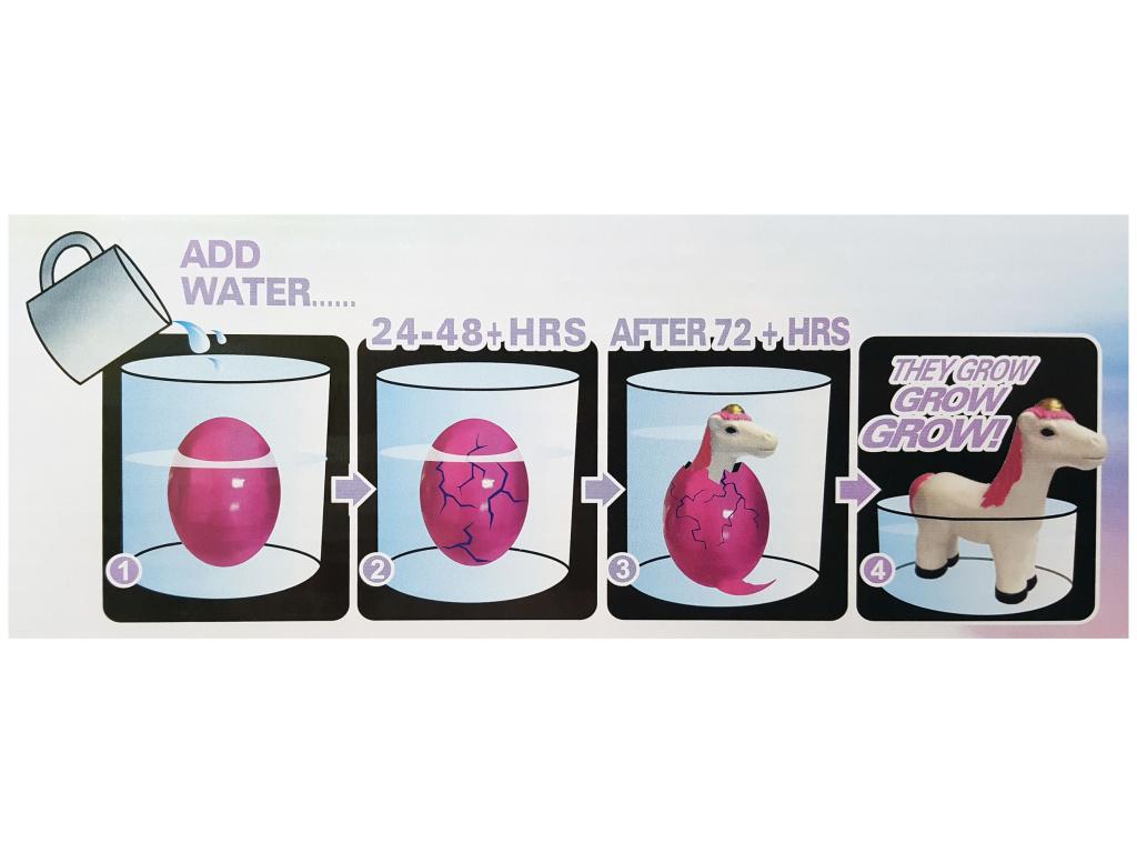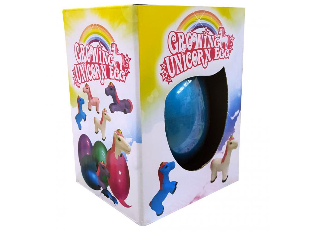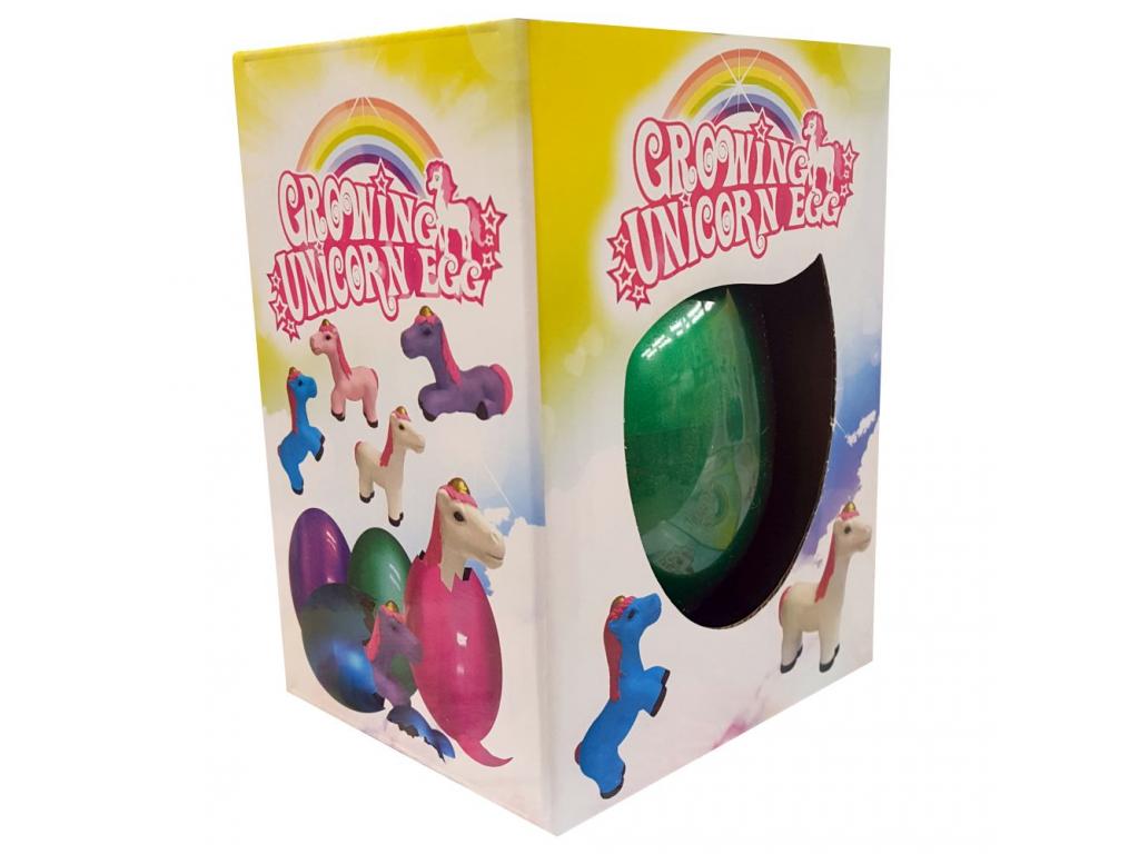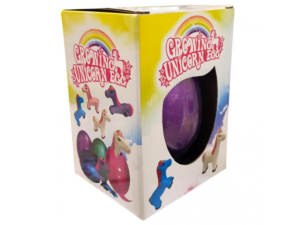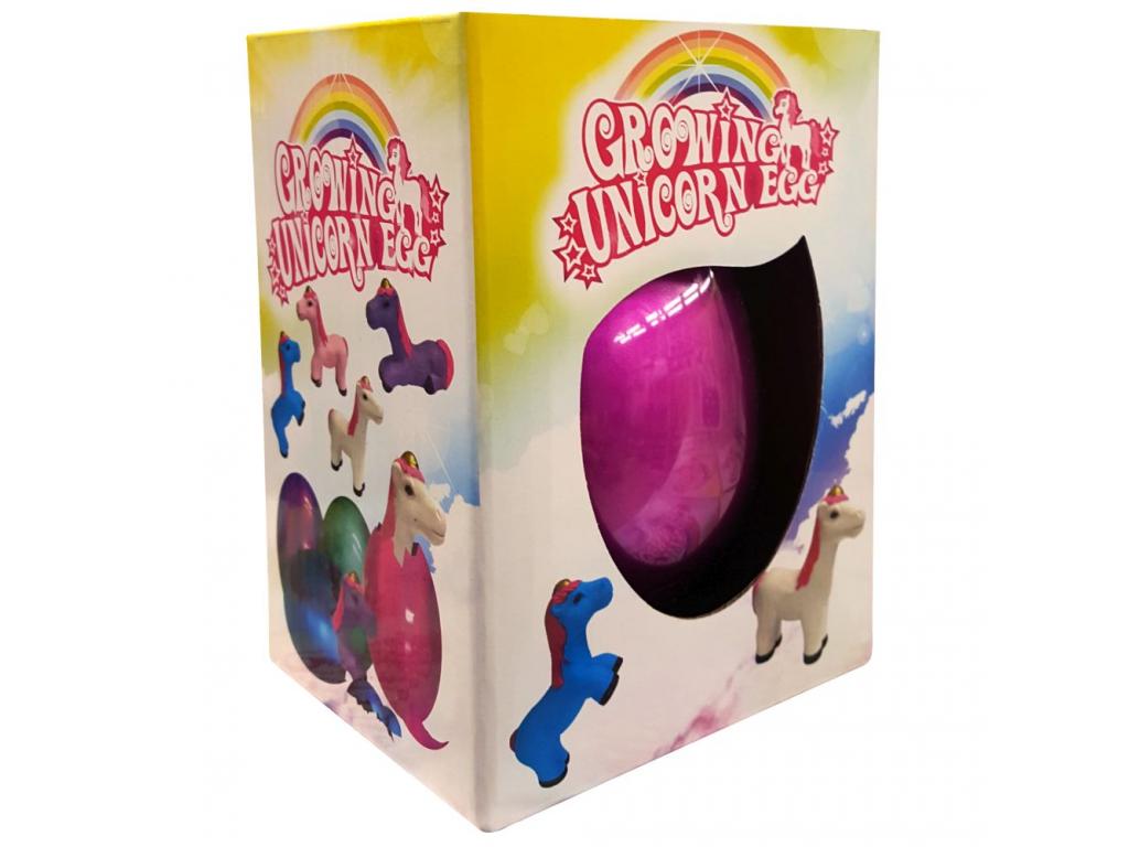 Keltsd ki a tojásból a színes egyszarvút! A Növekvő unikornis tojásban egy kisebb méretű egyszarvú lófigura, aki egy tojásba van rejtve. Törd fel a tojást, hogy előbukkanjon az unikornis, aki vízbe téve egyre nagyobb és nagyobb lesz, mígnem elnyer végleges méretét! A tojás méretei: 9 x 14 cm. A játékok külön kaphatóak. A megjegyzésben kérjük tüntesd fel, hogy melyik változatot szeretnéd!