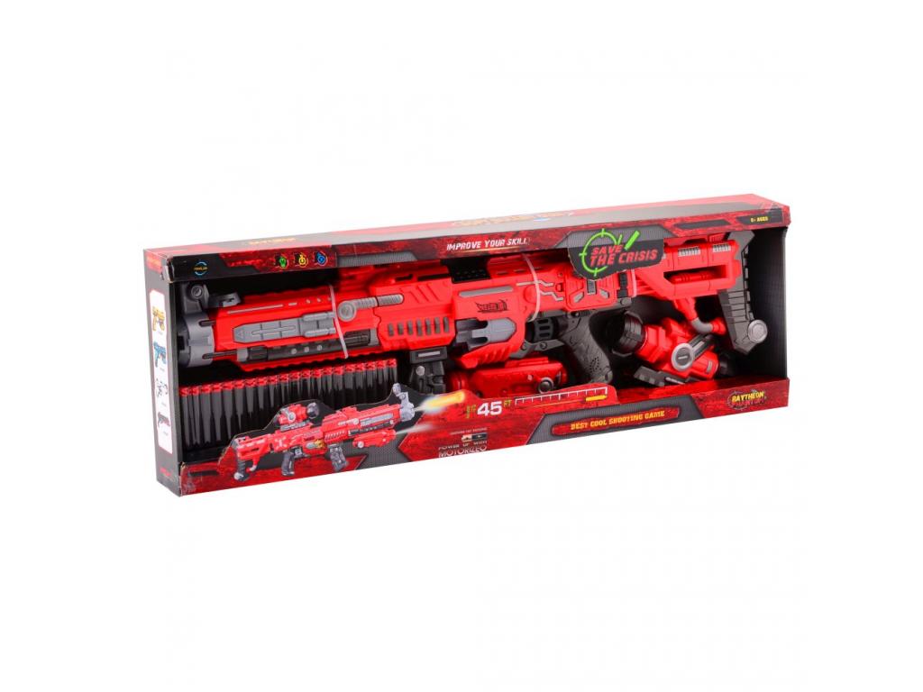 Célozz és lőjj a nagy Serve and Protect puskával! A Serve and Protect szivacslövő fegyver egy piros és fekete színű műanyag puska, ami ártalmatlan szivacsos lőszereket lő ki magából. A fegyver minden extrával, optikai irányzékkal, forgótárral és válltámasszal is fel van szerelve, a puskával pillanatok alatt profi kommandóssá válhatsz! A fegyver egyesével lövi ki a szivacs lőszereket, az irányzékkal nagyon pontosan lehet célozni akár 8 méteres távolságba is. A Serve and Protect szivacslövő fegyver készlet 22 darab szivacsos lövedéket is tartalmaz, a fegyvert NERF lőszerekkel is lehet használni. A Serve and Protect puska mérete: 75 cm.
