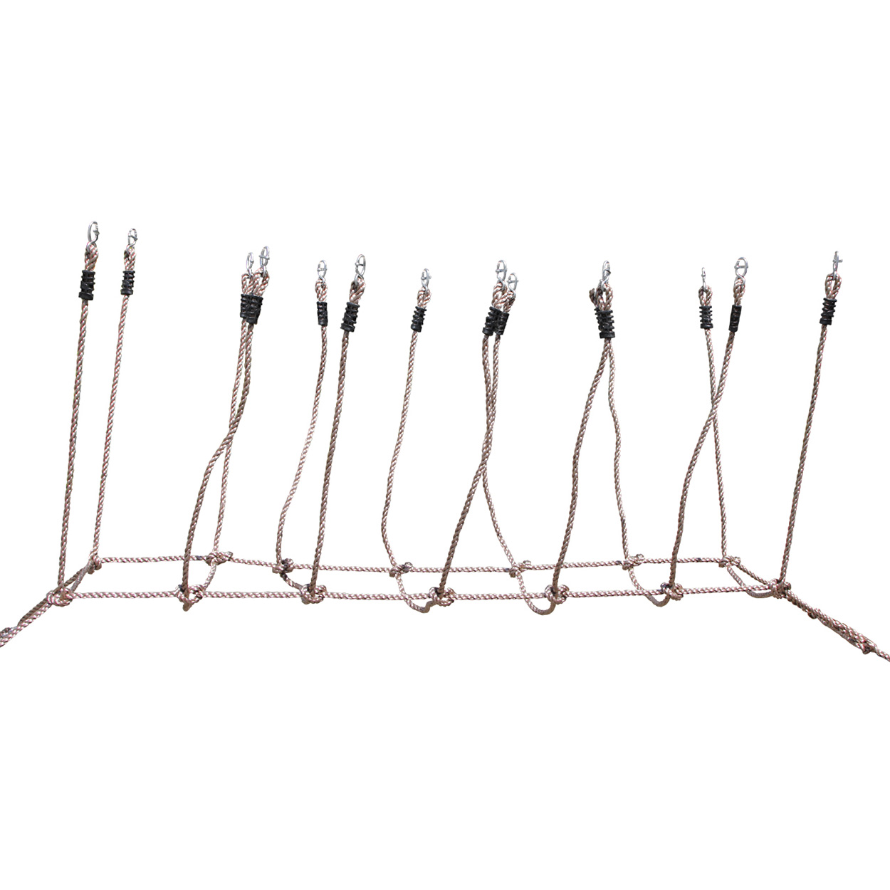 Robosztus műanyag kötélből készült függőhíd kültéri játszóterekhez.Könnyedén felszerelhető, mellékelt összeszerelési útmutatóval. (holland nyelvű)Szakítószilárdsága miatt a kis mászók számára biztonságos és strapabíró.Ideális a koordinációs készségek és az egyensúly fejlesztésére.