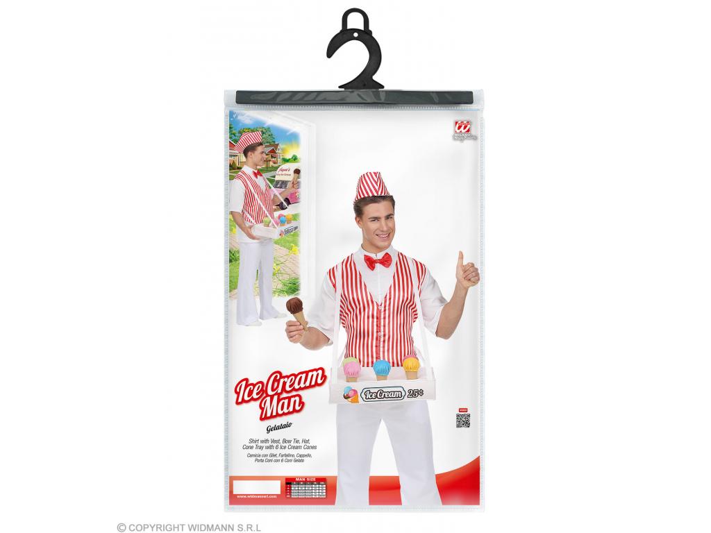 Ez a jelmez nagyszerű, részletgazdag kidolgozás, minőségi anyagból készült, így tökéletes választás farsangra vagy halloween bulira. ing mellénnyel, csokornyakkendő, sapka, fagyitartó 6 tölcsérrel