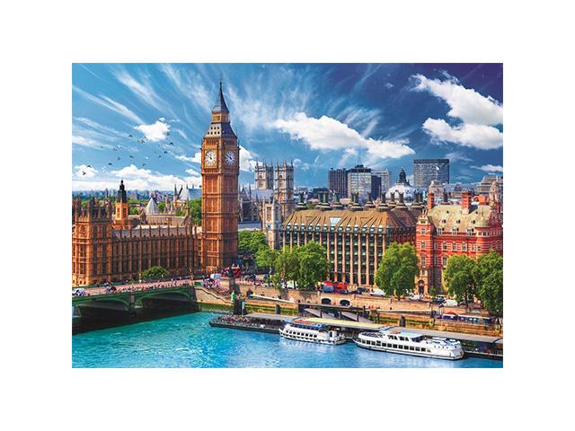 Londonról és Angliáról szinte mindenkinek a borús esős idő jut eszébe, pedig ott is előfordul napsütéses időjárás, amikor a történelmi város festői szépségben mutatkozik meg a turisták szeme előtt. Ez a puzzle is egy ilyen csodaszép időben mutatja a város legnevezetesebb óratornyát a Big Bent és persze a Temze partját. A Trefl puzzle darabok tökéletesen illeszkednek és a kompromisszummentes, professzionális nyomdai eljárásoknak köszönhetően az elkészült kép lélegzetelállítóan éles és színpompás.