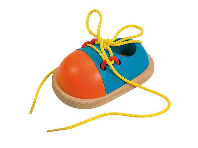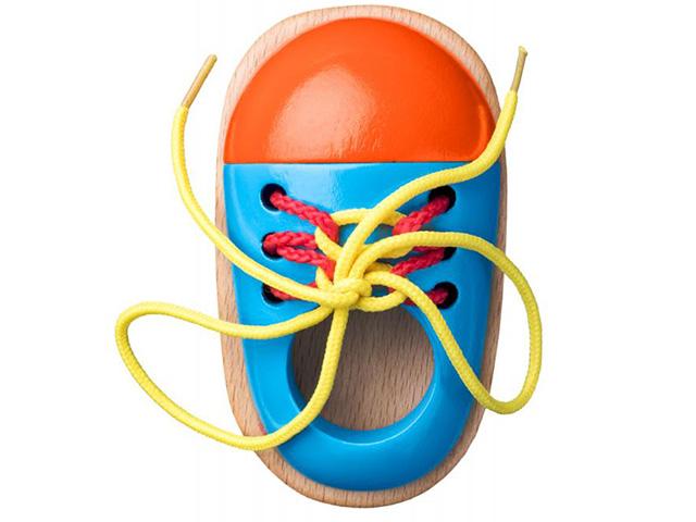 A Színes fa játék cipőcske fűzővel - Woodyland leírása: