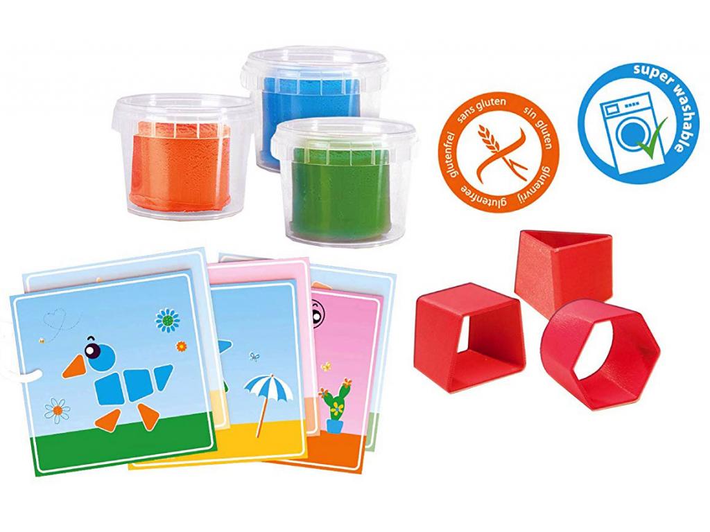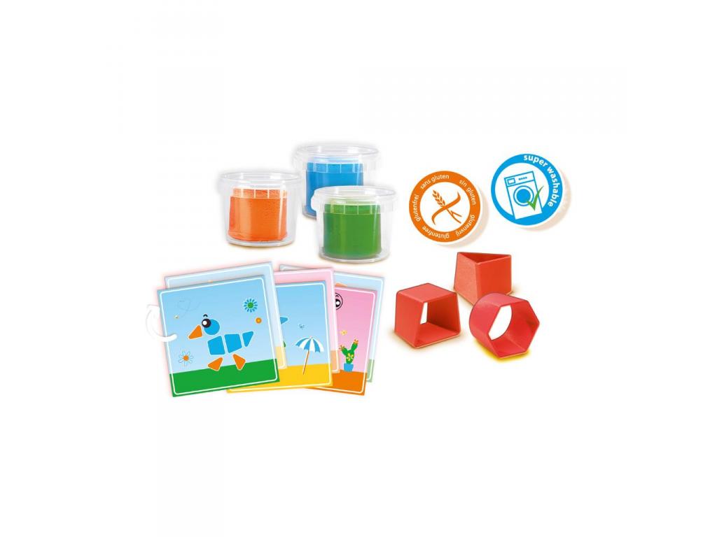 Fedezd fel a formák világát színes gyurmákkal! A SES Első gyurmám kinyomókkal készlet színes gyurmát, valamint különböző formájú gyurmakinyomókat tartalmaz, amikkel a gyerekek megismerhetik a fontosabb formákat, a háromszöget, a négyzetet, a kört, vagy épp a hatszöget. A gyurmák élénk színűen, egészségre ártalmas anyagot és glutént nem tartalmaznak. Az Első gyurmám kinyomókkal készlet tartalma: 3 tégely SES gyurma, 3 darab gyurmakinyomó. Csomagolás méretei: 20 x 4 x 20 cm.
