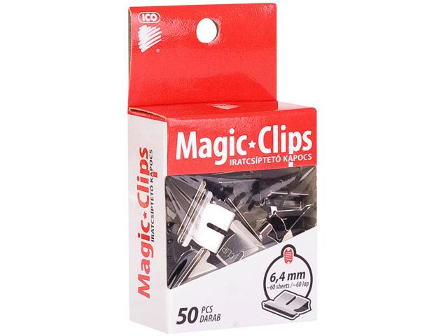 Az ICO Magic Clipper segítségével könnyen, gyorsan és egyszerűen lehet több lapot is egybefűzni. Ebben a dobozban ötven kapocs található, amelyek a 6,4 milliméteres méretével nagyjából hatvan lapot lehet összefogni. A Magic Clipper kapcsoknak legnagyobb előnyei abban rejlenek, hogy anélkül rögzíti össze a lapokat, hogy azokban maradandó kárt tenne, illetve bármikor el lehet őket távolítani, hogy később újra felhasználhassuk őket.