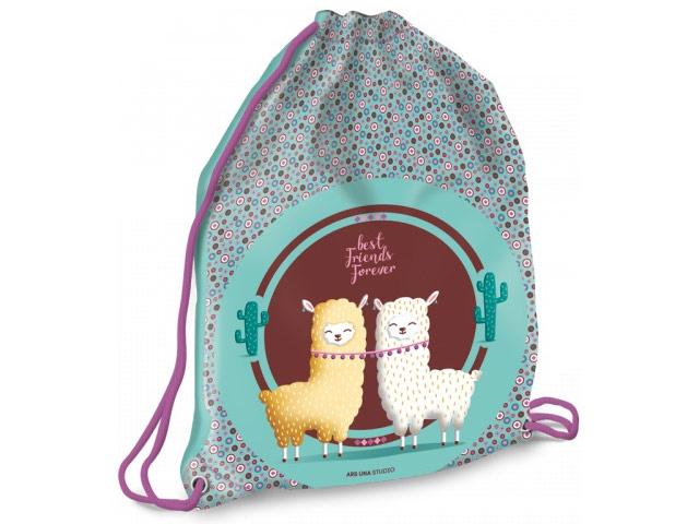 Kiváló minőségű, strapabíró anyagból készült ez a dekoratív tornazsák, mely hosszú ideig társuk lesz az iskolában a gyerekeknek. Váltóruhájukat és cipőjüket is hordozhatják benne, valamint a zsinórok összehúzásával könnyen lezárható, ezáltal biztonságosan hordozható vállon vagy hátra véve. A sportzsák mintáján két bájos láma tűnik fel, így a türkiz alapszínű kiegészítő igazán mutatós darab lesz a suliban!
