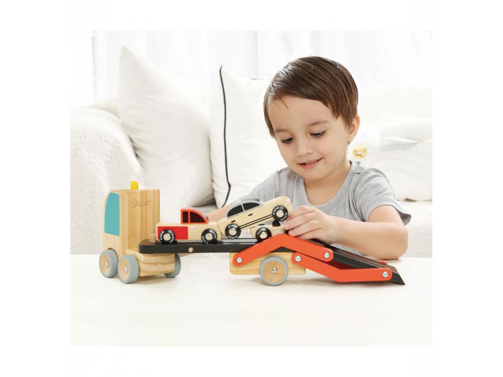 A minőségi fából készült autós készlet kiváló szórakozást nyújt a gyermekek számára. Az autókat és kamionokat szerető gyermekek imádni fogják ezt a végtelen variációs lehetőséget biztosító autószállítót. A Classic World fából készült játékai rendkívül minőségiek, természetesek és 100%-ban biztonságosak.