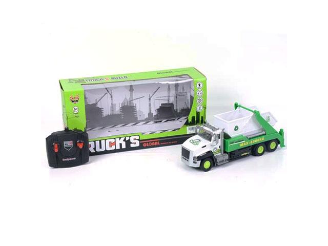 RC távirányítós konténer szállító autó zöld színben fénnyel