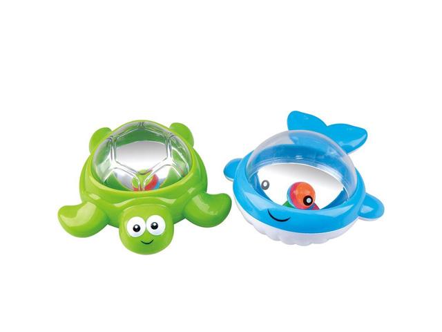 Ez a cuki kis bálna és teknős nagyszerű játszópajtásai lesznek a gyerekeknek az esti fürdőzés során. Ezekkel a játékokkal az egy év körüli gyerekek remekül le tudják magukat foglalni, amíg a szülők alaposan megmosdatják. A zöld színű teknős és a kék színű bálna közepében egy hatalmas áttetsző buborék lett kialakítva, amiben egy színes golyó látható, és ez a megoltás természetesen eléri, hogy a játék lebegjen a víz felszínánk, és a gyerekek elég szórakoztatónak találják a vele való játékot.