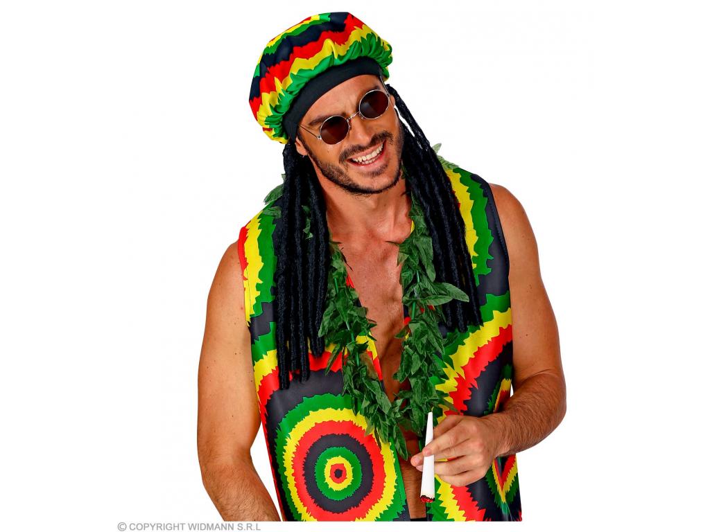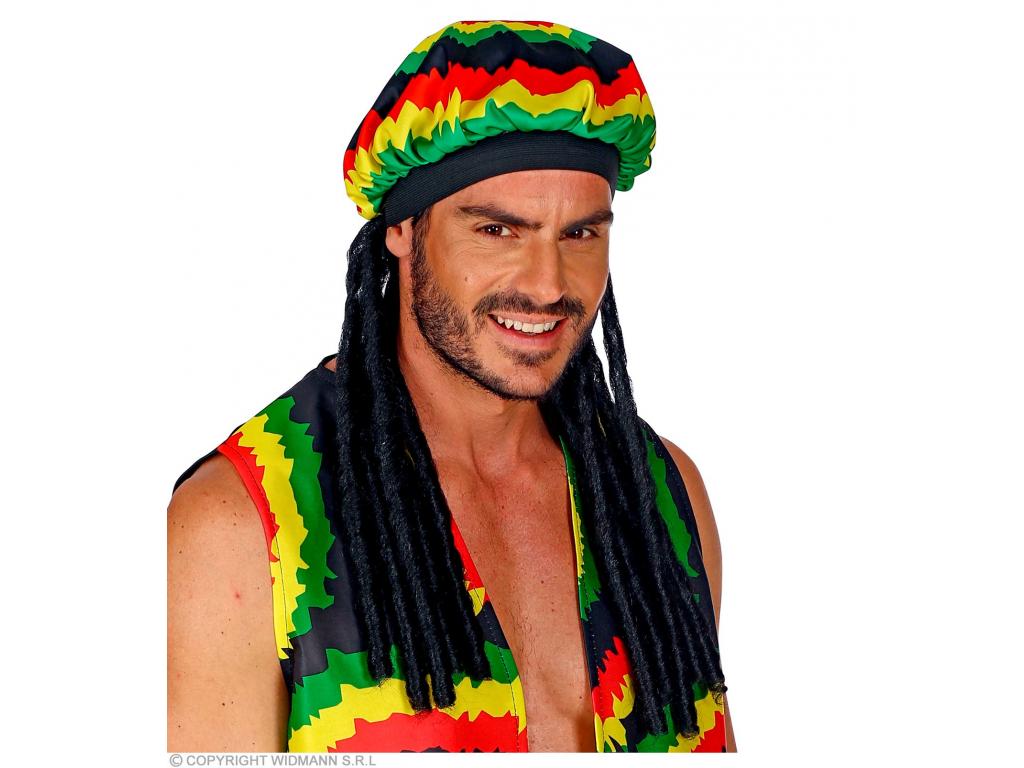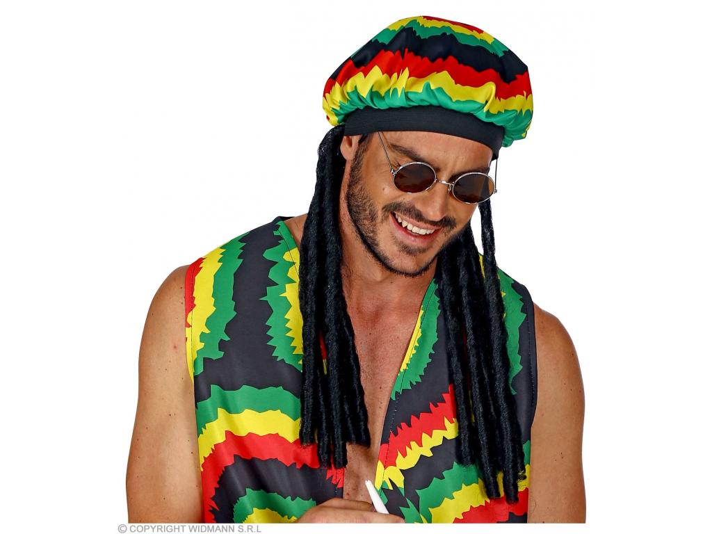 A reggae zene kedvelőinek tökéletes választás ez a sapka a farsangi jelmezbálba, ráadásul még fekete rasztahajat is találsz rajta, amitől igazán egyedi leszel.