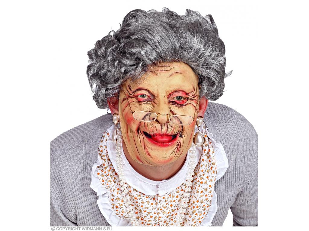 A félmaszk segítségével egy idős néni bőrébe bújhatunk a farsangi vagy halloweeni bálon.