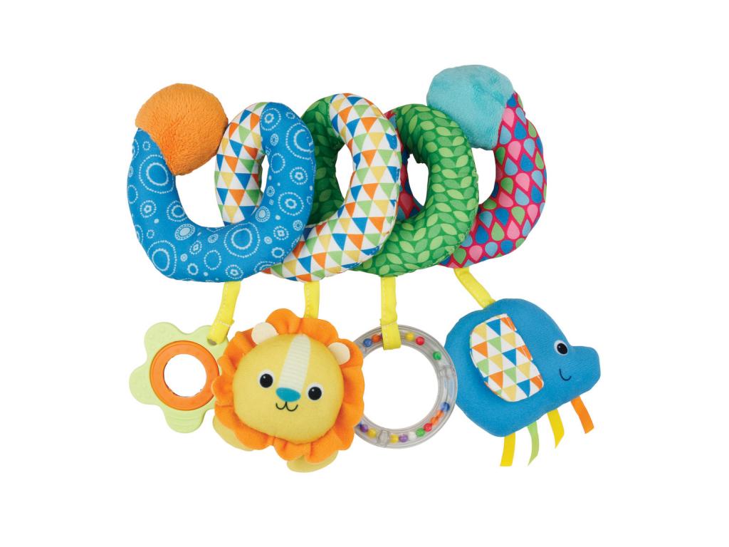 Spirál formájú plüss bébijáték, amit a babaágyra vagy babakocsira lehet feltekerni!