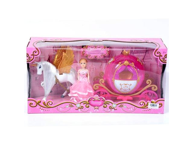 A kislányok rajonganak a tündérmesékért annak minden varázslatával együtt. A mesebirodalom meseszép hercegnője csak a neki méltó kocsiban utazhat, és a szépségéhez egy igazán csodálatos hintó dukál. Ebben a dobozban egy olyan hintót találnak a kislányok, ami egy rózsaszín hintót tartalmaz, aminek a kialakítása egyetlen nagy ékszerre emlékeztet és ennek megfelelő díszítést is kapott. A hintó elé pedig alighanem a földkerekség legszebb paripája került a hófehér szőrével, és arany színű szárnyaival. Ez a játék a fényeivel és hangjával elvarázsolja a kislányokat.