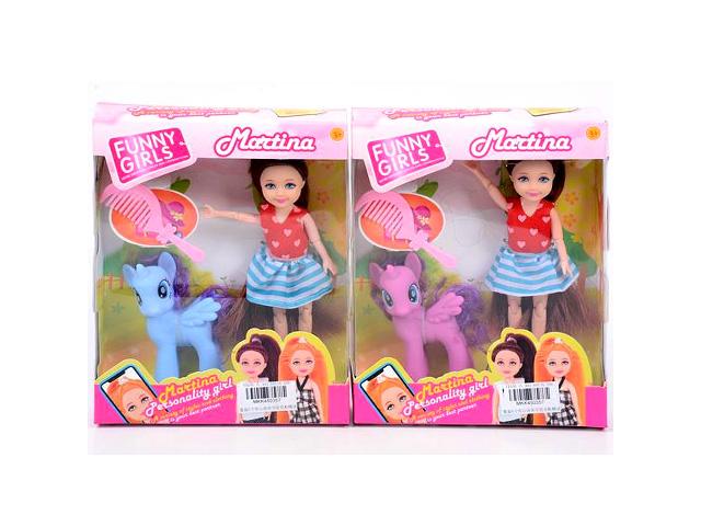 Martina baba a kislányok egyik legnagyobb kedvence lesz, hiszen remek kalandokat élhetnek majd át együtt a gyerekszobában játszva. Válassz egyet a két változat közül, annak megfelelően, hogy rózsaszín vagy kék pónival szeretnéd meglepni a kislányodat. A készletben találgató cuki Martina baba nagyjából tizenöt centiméteres és a mozgatható végtagjaival nagyszerű játékélményt kínál, különösen, hogy a csomagban egy fésű és egy cuki pegazus póni is található.