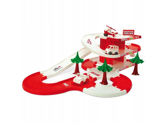 Ez a szuper kórház és parkoló a legkisebb gyerekeknek is hatalmas játékélményt nyújt, köszönhetően a nagy méretű elemeknek, amelyeket akár ők maguk is képesek összepattintani. A készletben egy több szintes parkoló és kórház található, amelyhez utakat lehet csatlakoztatni, melyek összes hossza majdnem eléri az öt métert. Természetesen a parkoló mellé különféle járművek is járnak, így két kisautóval és egy helikopterrel meg is indulhat a játék. A játékhoz negyvennyolc matrica is jár, amivel még színesebbé és izgalmasabbá lehet varázsolni az épületet.