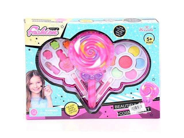 Minden kislány rajong a smink készletekért, és a legtöbbjük az édességet is nagyon szereti, így egy olyan smink készlet, amit egy nyalóka formájú tároló rejt biztos, hogy nagy sikert fog aratni. A csajos színű és nyalóka formájú tároló szintjeit egyszerűen el lehet forgatni egymás alól, így rendezetten és átláthatóan előtűnnek az arc- és a szemfestékek, a szájfény, és minden apróság, amire a sminkelés során szükség lehet. A praktikus tárolónak köszönhetően kényelmesen elfér bármelyik táskában, így mindig kéznél lehet, ha szükség lenne rá.