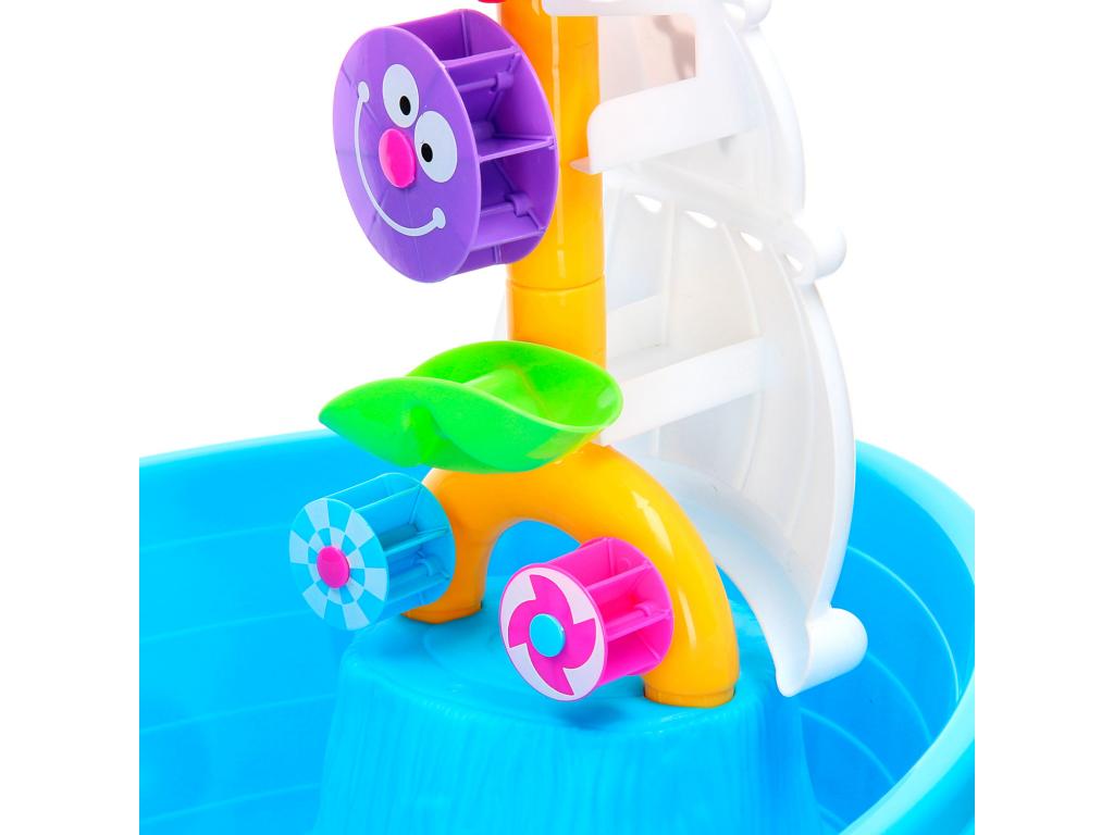 A vitorlán különböző forgók találhatóak, melyen keresztül a gyerekek bátran önthetik a vizet.