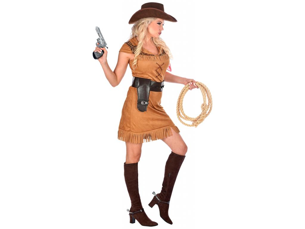 Nem csak a fiúk lehetnek cowboyok. Igenis a lányok is öltözhetnek cowgirlnek! Tökéletes vadnyugati lány jelmez. Szerezze be hozzá a pisztolyt és a barna kalapot is! Így tökéletes lesz a jelmez.
