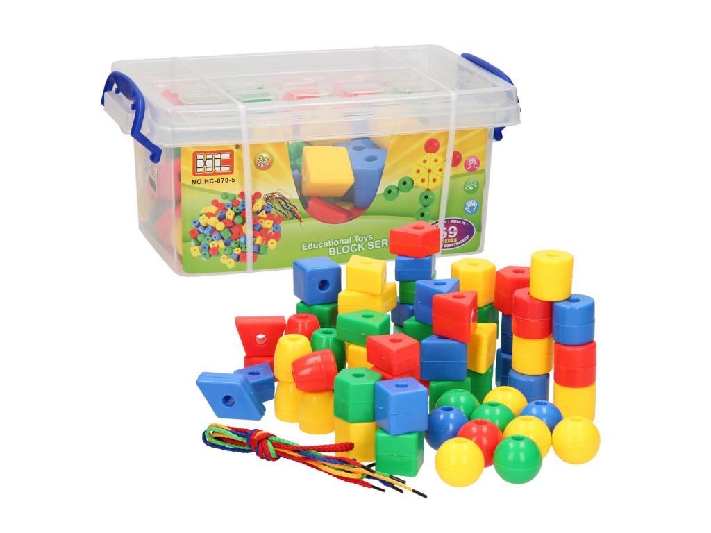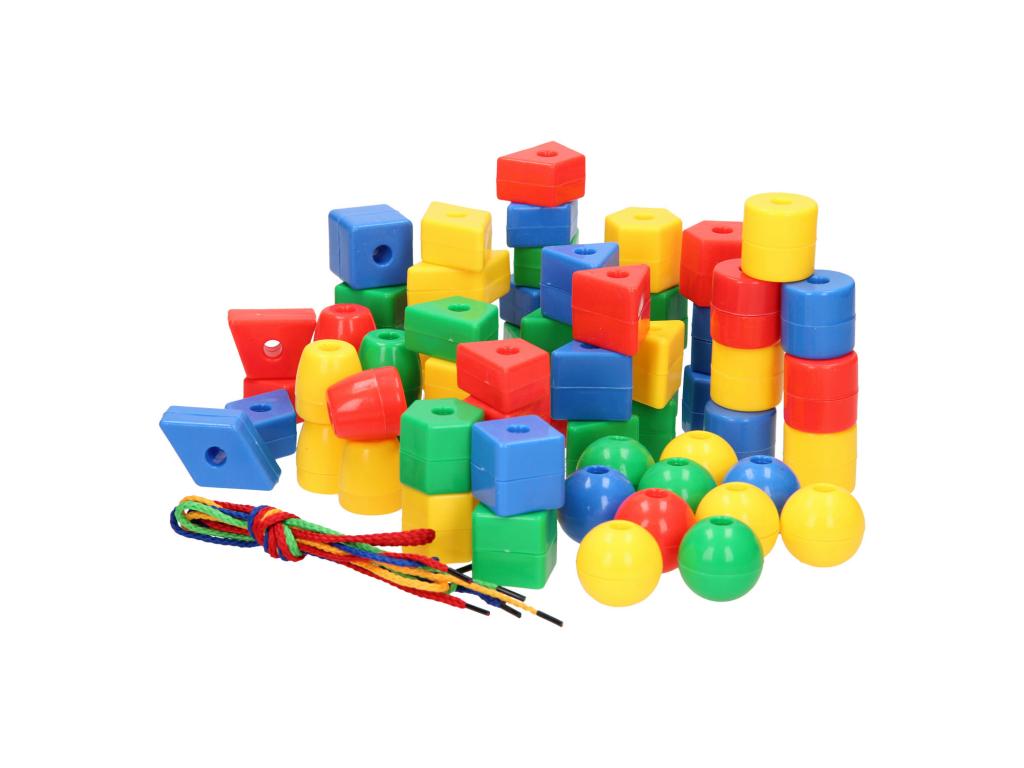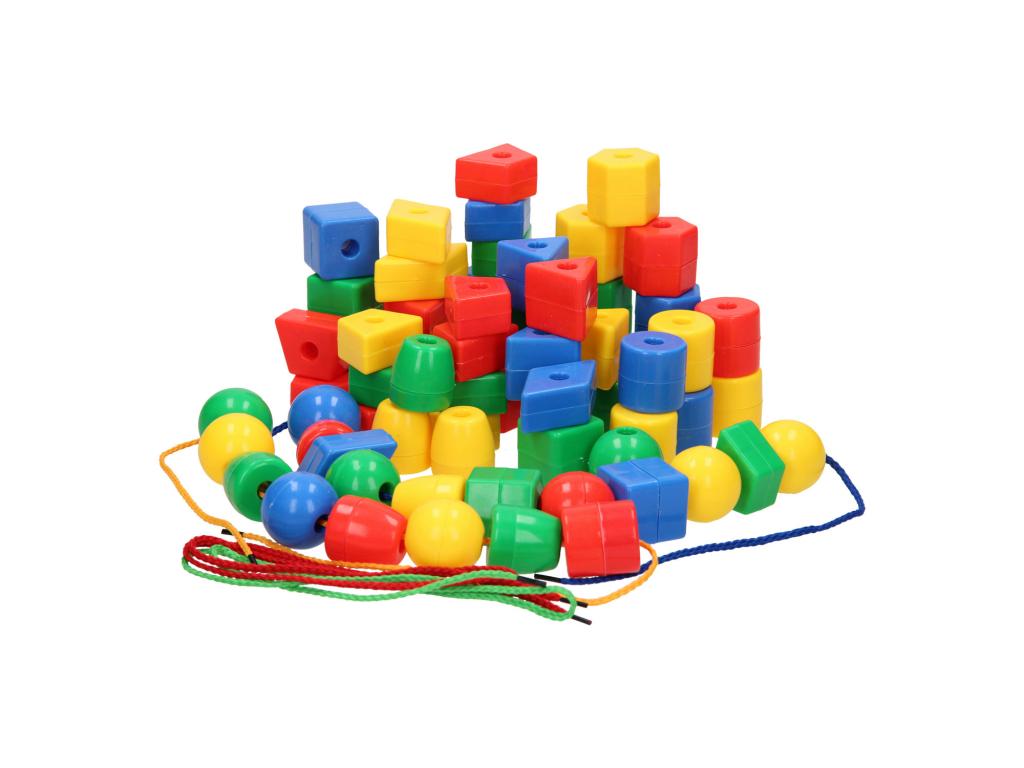 Ez a készlet a kisebbeknek is ideális, hiszen a nagy elemeknek köszönhetően a kicsik is könnyen át tudják fűzni a madzagot.