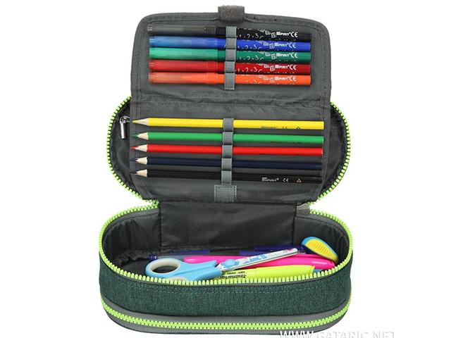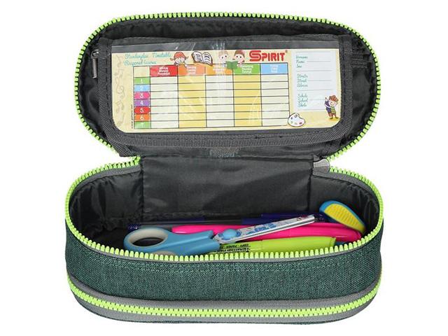 A sötét és világoszöld szín kiválóan harmonizál a Spirit tolltartón amely igazán divatos megjelenést kölcsönözhet használója számára akár az iskolai mindennapok során, akár az irodában dolgozva. A tolltartóban a kétrekeszes és kihajtható füles kialakításának köszönhetően rengeteg írószer elférhet, gumis rögzítőpántokkal pedig kiválóan rendszerezhetőek az írószerek. 23cm-es mérete hozzájárul, hogy a belsejében akár körzőt, vonalzót és ollót is magával vihessen gyermeked az iskolába. Az átlátszó zsebben órarendet és egyéb fontos iratokat, cetliket tárolhat.
