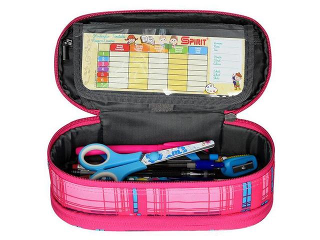 A Spirit: Rózsaszín kockamintás ovális emeletes tolltartó 23x10cm leírása: