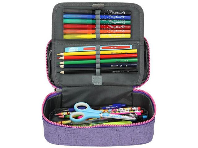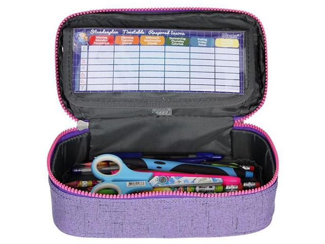 A Lila-pink színekben tündöklő Spirit tolltartó igazán divatos, csajos megjelenést kölcsönöz használója számára és a kiváló poliészter anyagának köszönhetően hosszú éveken át elkísérheti gyermeked az iskolai mindennapok során. Nagy belső tároló méretének köszönhetően rengeteg írószer elférhet benne, míg általános iskolában az alapvető írószerek mellett a színes ceruzáknak és a filctollaknak kell elférnie benne, az egyetemi évek alatt inkább a körző, vonalzó és egyéb precíziós eszközök kaphatnak helyet a belsejében.