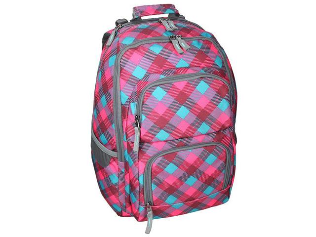 A Spirit: E-Bag pink és türkiz kockás lekerekített iskolatáska, hátizsák leírása: