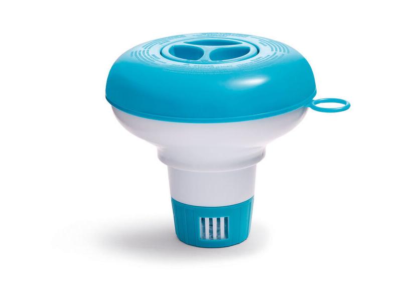 Intex úszó klór adagoló, mini tablettákhoz. Az adagoló anyaga ellenálló műanyagból készült, a vegyszer az oldódási idő szabályozó segítéségével állítható. Mérete: 12,7 cm.