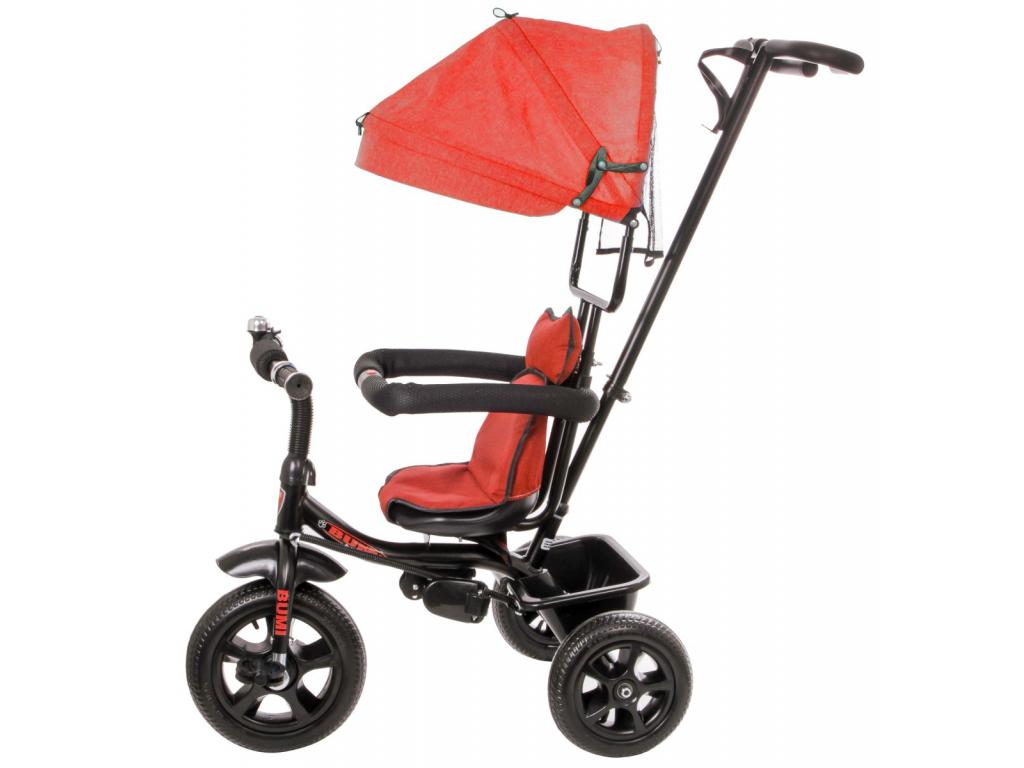 A BUMI-1 típusú tricikli tökéletes választás a gyermekek triciklihez, később biciklihez való szoktatásához, mindemellett a hétköznapokban kitűnő segédeszköz a kinti sétához. A tricikli számos funkcióval, kiegészítővel rendelkezik. Az első keréken található pedálokkal a gyerekek tudják magukat is hajtani, de a tricikli hátulján szülőkormány is található, ami segít a kormányzásban, gyorsulásban vagy lassításban. A gyermek kormányán csengő található, míg a hátsó, szülő kormányhoz egy kulacs/üdítőtartó került felszerelésre. A hátsó két kerék felett egy tároló rekesz helyezkedik el. A tricikli tetején összecsukható napellenző található. A gyermekek kormányozhatnak is, de kapaszkodó rúd is rendelkezésre áll, amennyiben a szülő tolni szeretné a gyermeket. Az első kerék sárvédővel van ellátva.