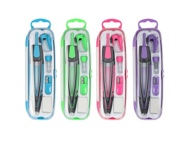A körzők elengedhetetlen kellékei a matematika óráknak, így biztosan nagy segítség lehet ez a szett, amiben minden megtalálható, amire szükség lehet egy körző használatakor. A szettben egy különleges megjelenésű körző található, mely színes elemeket is kapott, így nagyon jól mutat. A körző dobozában mindennek megvan a saját helye, mint például a körző hegynek, a körzőhegy hegyezőnek, a radírnak és az adapternek, amely segítségével akár ceruzát is használhatunk a jelöléshez.