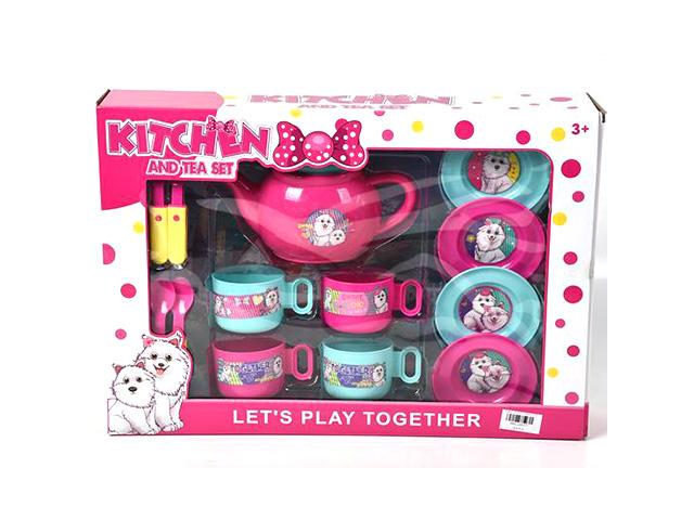 A kislányok most egy igazán mutatós teáskészlettel vendégelhetik meg a barátnőiket vagy a szervezhetnek a babák számára egy szórakoztató teadélutánt. Ebben a csomagban egy négy személyes teás készlet kapott helyet, bögrékkel, csészealjakkal, kannával és persze kanalakkal. A készletet ráadásul pink és türkiz alapszínek mellett nagyon cuki kutyusos képek díszítenek, így egészen biztos, hogy egyetlen szempillantás alatt elnyeri majd a kislányok tetszését.