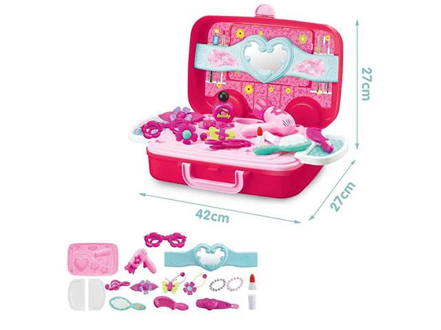 Egy ilyen nagyszerű táska minden kislánynak az álma, hiszen a praktikus táska egy komplett szépítkező stúdiót rejt magában. A huszonháromszor harmincegy centiméteres kis bőrönd alján kerekek lettek kialakítva, így a gyerekek a fogantyújánál fogva egyszerűen guríthatják is maguk mellett, és amikor csak szükség van rá, csak felnyitják a tetejét, és máris egy jól felszerelt stúdió tárul a szemünk elé. A bőrönd belsejében egy tükör is helyet kapott, így a kislányok folyamatosan ellenőrizhetik, hogy milyen szépen sikerült az új frizura, aminek az elkészítéséhez minden megtalálható a csomagban.