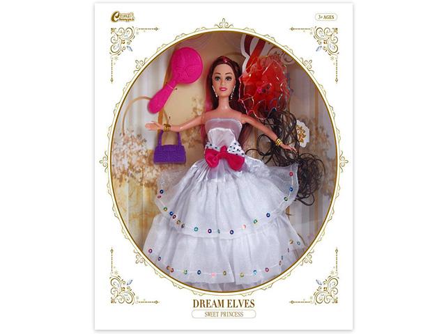 Divatbaba póthajjal és kiegészítőkkel fehér ruhában 30cm